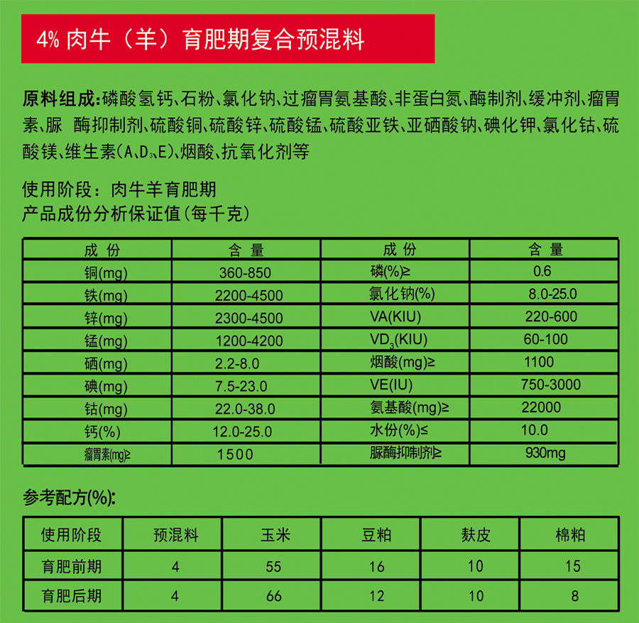 上一條:4%肉牛羊育肥期復(fù)合預(yù)混料
